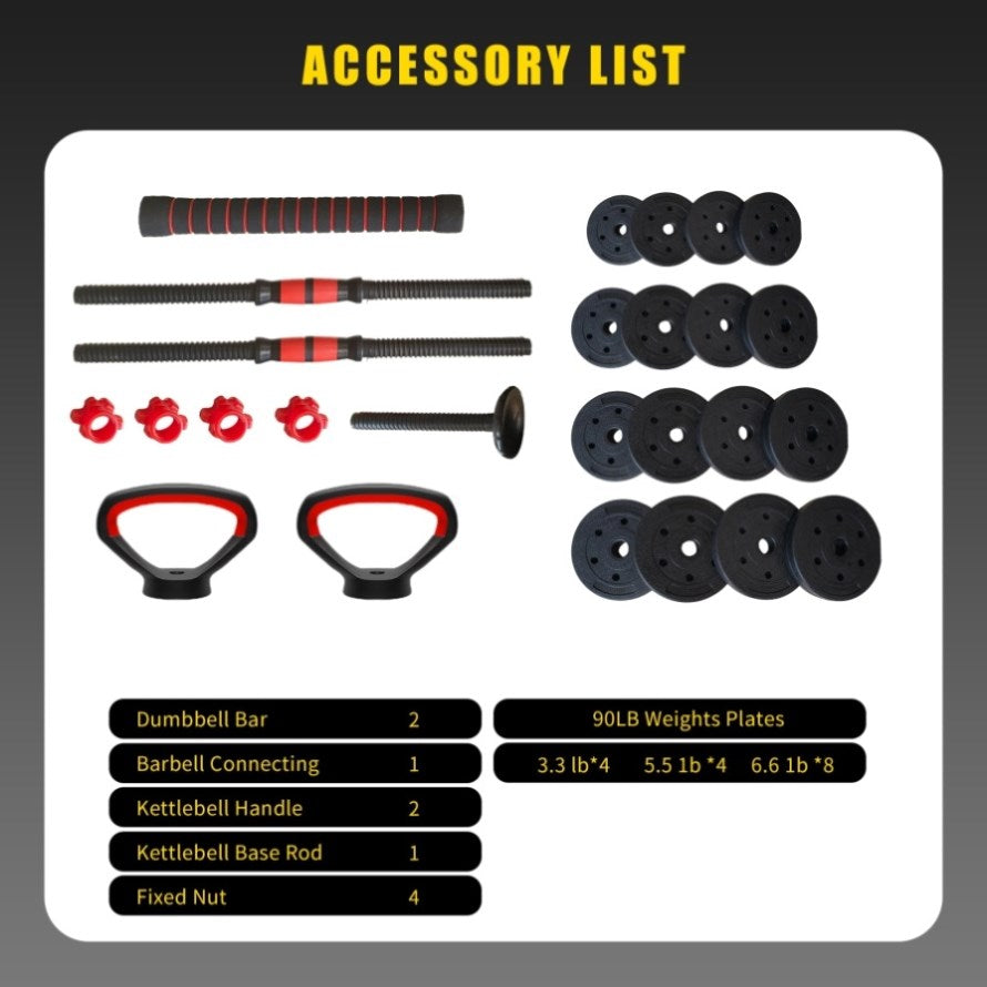 90LB 4-in-1 Adjustable Dumbbell Set Converts to Barbell, Kettlebell & Push-Up Stands w/ T3772P351245
