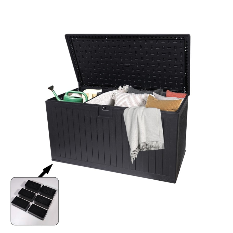 Durable Outdoor Patio Box: This 260-gallon resin deck box is crafted from weather-resistant materials, double-layer cover design and solid structure, including bottom plate and bottom reinforcement ribs. It withstands various weather conditions while maintaining its appearance, making it a perfect addition to any garden, backyard, or patio.