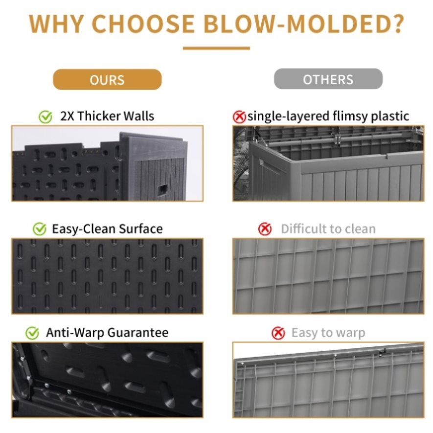 Extra Large Storage Capacity: This outdoor storage box provides ample space for storing patio furniture cushions, pool accessories, and garden tools. Its large 260-gal capacity makes it suitable for both indoor and outdoor use, keeping your space organized and clutter-free.