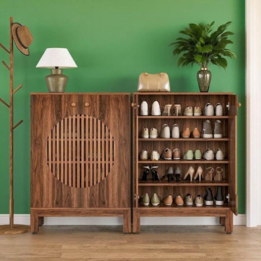- Unique Louvered Doors: The round louvered doors not only deliver a sleek visual appeal but also promote airflow, ensuring your shoes always stay fresh and odor-free