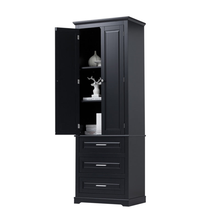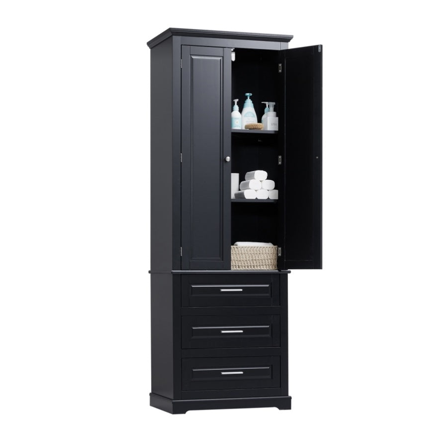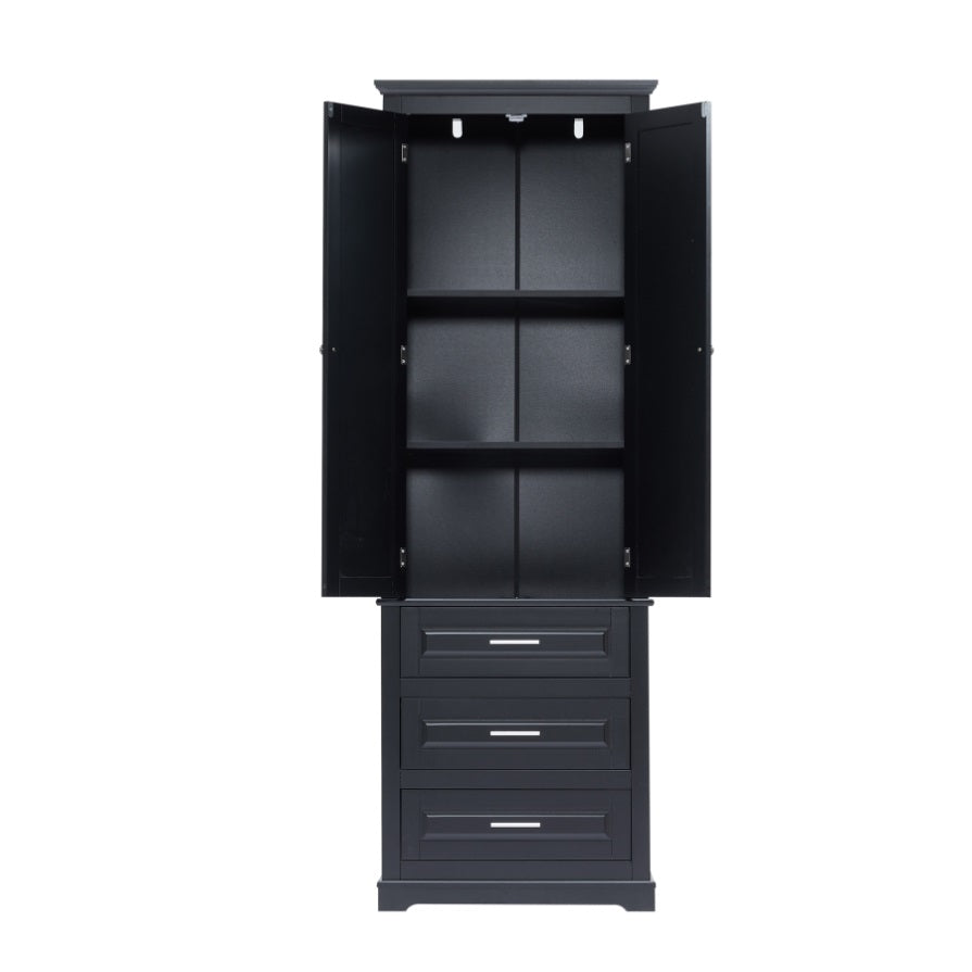 Tall Storage Cabinet with Three Drawers for Bathroom/Office, Black WF299282AAB