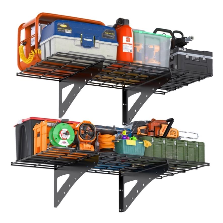 LARGE SIZE AND HIGH LOAD: This 2*4ft hanging wall rack is made of high quality metal, each tier can provide 250lbs of extra heavy load capacity. Please note that the wall rack must be mounted on a concrete or wood wall.