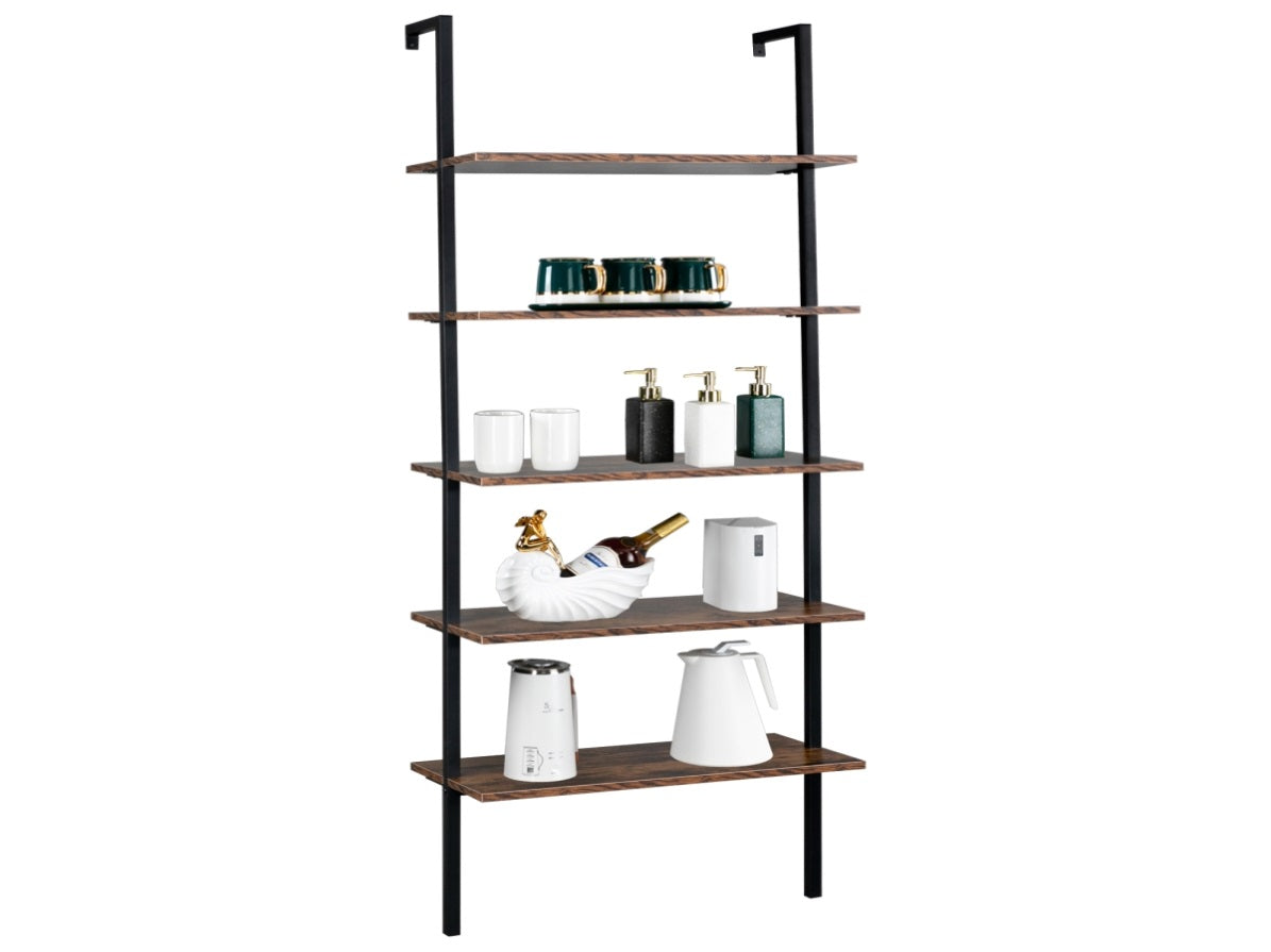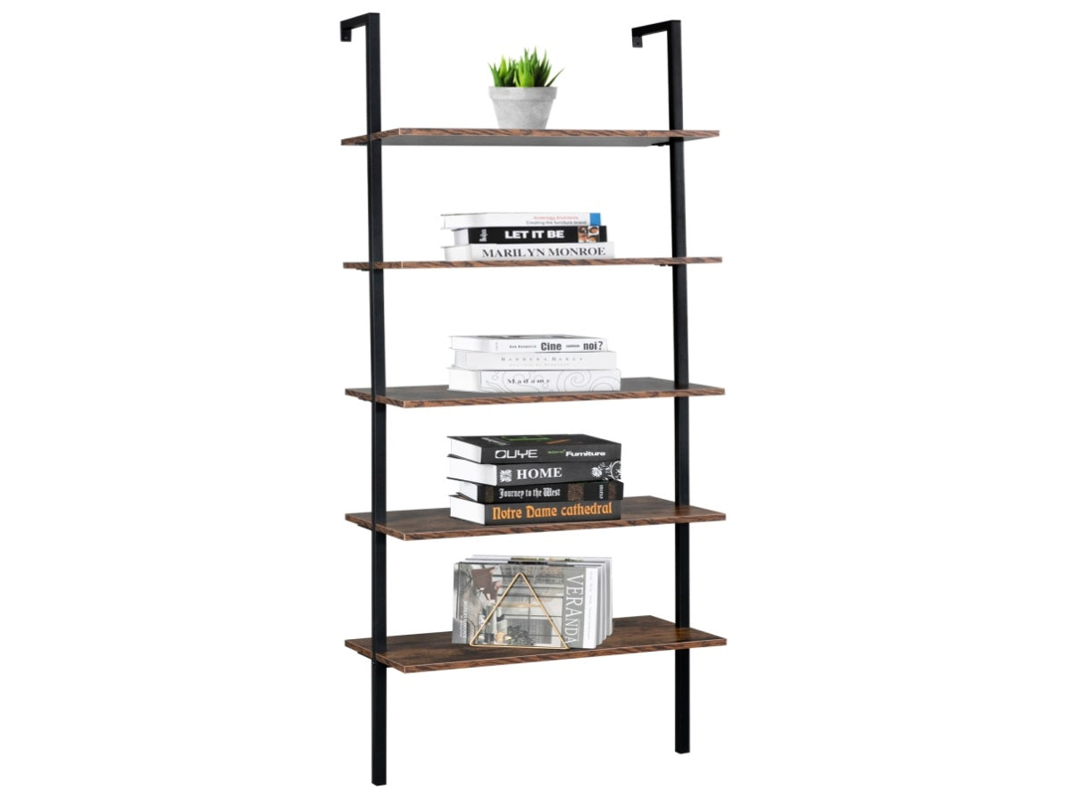 Industrial Wall Mounted Bookcase 5-Tier Open Ladder Shelf Bookshelf with Metal Frame, 23.6" L x 18960257