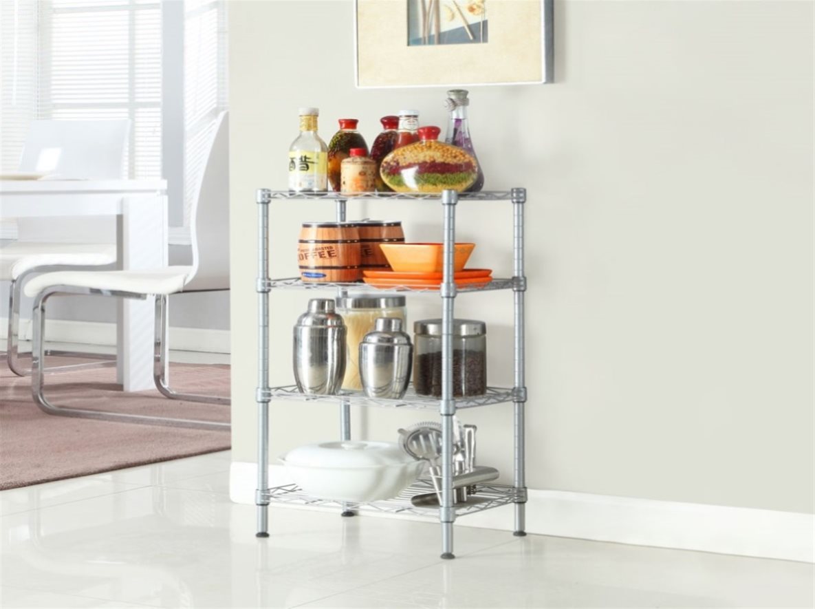 XM-207S Rectangle Carbon Steel Metal Assembly 4-Shelf Storage Rack Silver Gray 93246884