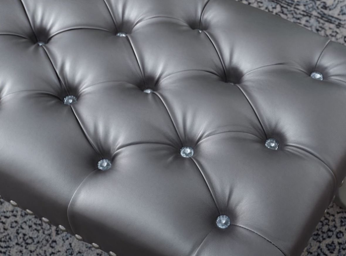Soft fabric upholstery with crystal button tufted detailChampagne color features throughout the benchWell padded for extended seating. Easily fits the traditional and transitional décorDimensions: 48"W x 18"L x 18"HSome assembly required, all parts and instructions included.Photo may be slightly different from the actual item in terms of color due to...