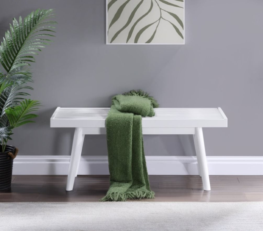 SLATTED DESIGN: This bench is characterized by its clean lines and distinctive slatted surface, adding a modern touch to any home decor.
