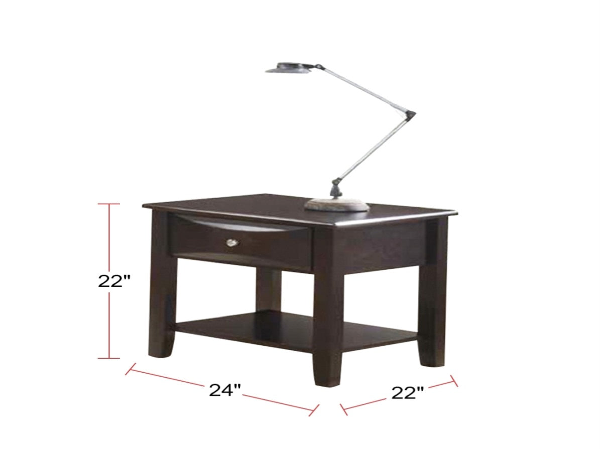 This beautiful end table is sure to make a statement in any living area. One drawer and lower shelf ensure there is ample storage for media and accessories. The rectangular table top allows you to have enough room to showcase your family portraits and any of your favorite decorative vases and table lamps.