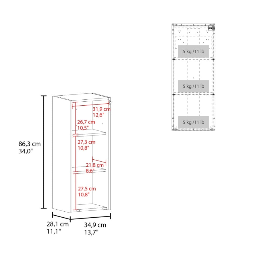 Dimensions: 66,4"" (H) x 13,7"" (W) x 42,6"" (D)."""