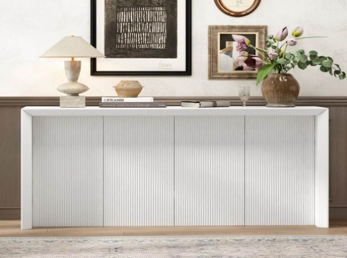 :Designed with clean, simple lines, this entryway table enhances the space without overwhelming it. Its minimalist form makes it a versatile piece that complements various interior styles, from contemporary to transitional.[Unique Wavy Texture]:The distinctive wavy design on the lower part of the table adds an artistic touch. This texture creates...