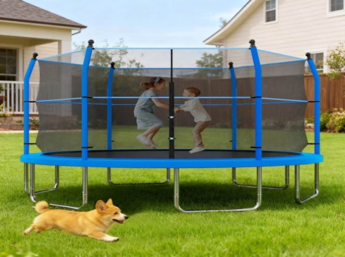 Premium Safety Features: Safety is our top priority. The trampoline is equipped with a breathable yet tear-resistant enclosure net that effectively prevents accidental falls, keeping jumpers secure. The protective rods are cushioned with durable foam sleeves, minimizing the risk of injury from unexpected collisions. Your safety is our commitment, and we take every precaution to provide a secure jumping environment.
