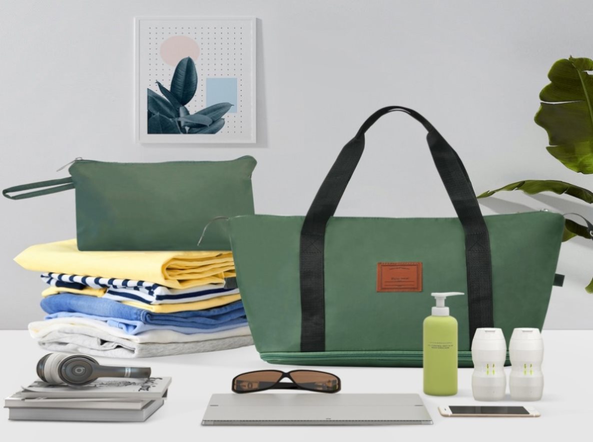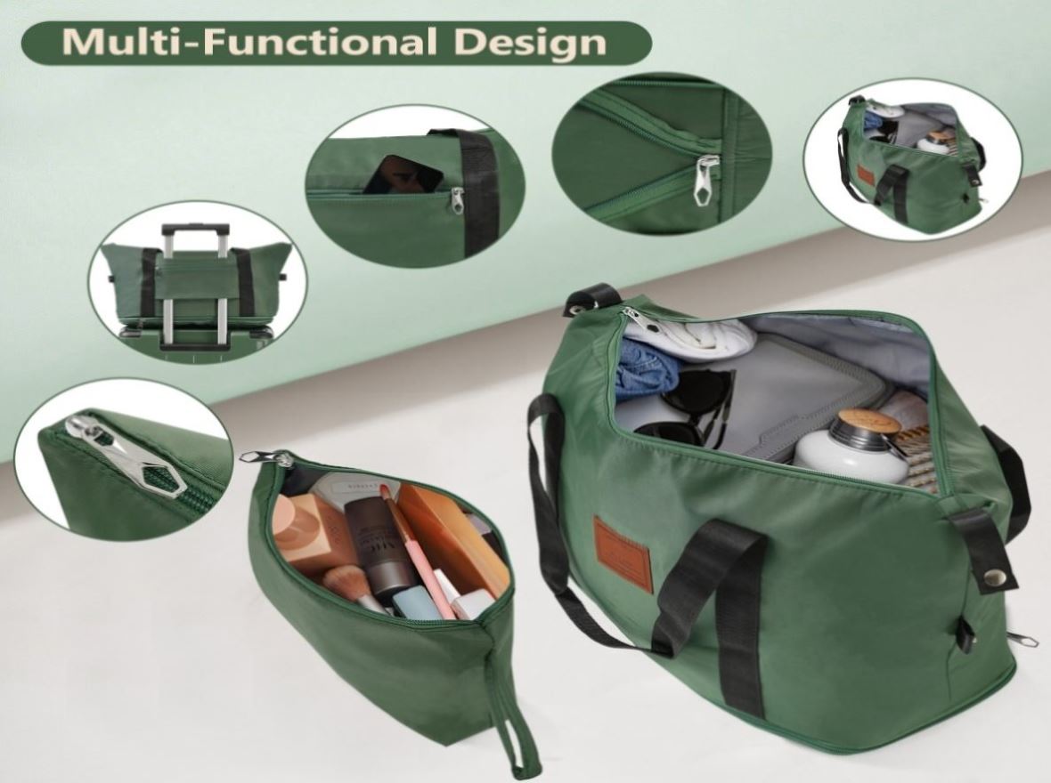 Expandable Weekender Bag: The duffel bag has a trolley sleeve with zippered pocket, so you can conveniently hang the bag on the adjustable luggage handle.