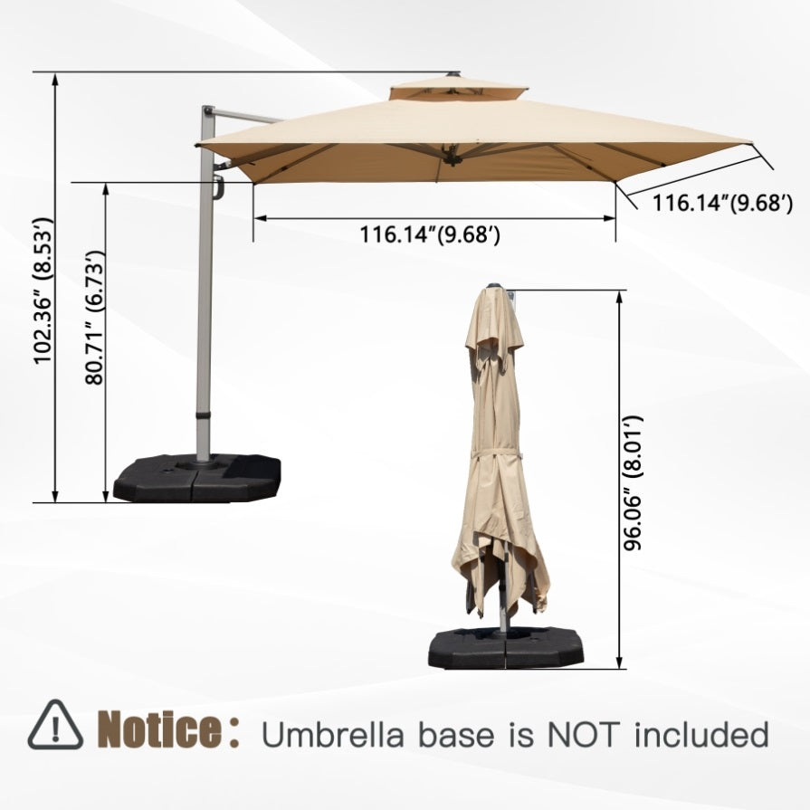 10'X10' Square Cantilever Umbrella with Center Pole, Beige W1859P337786