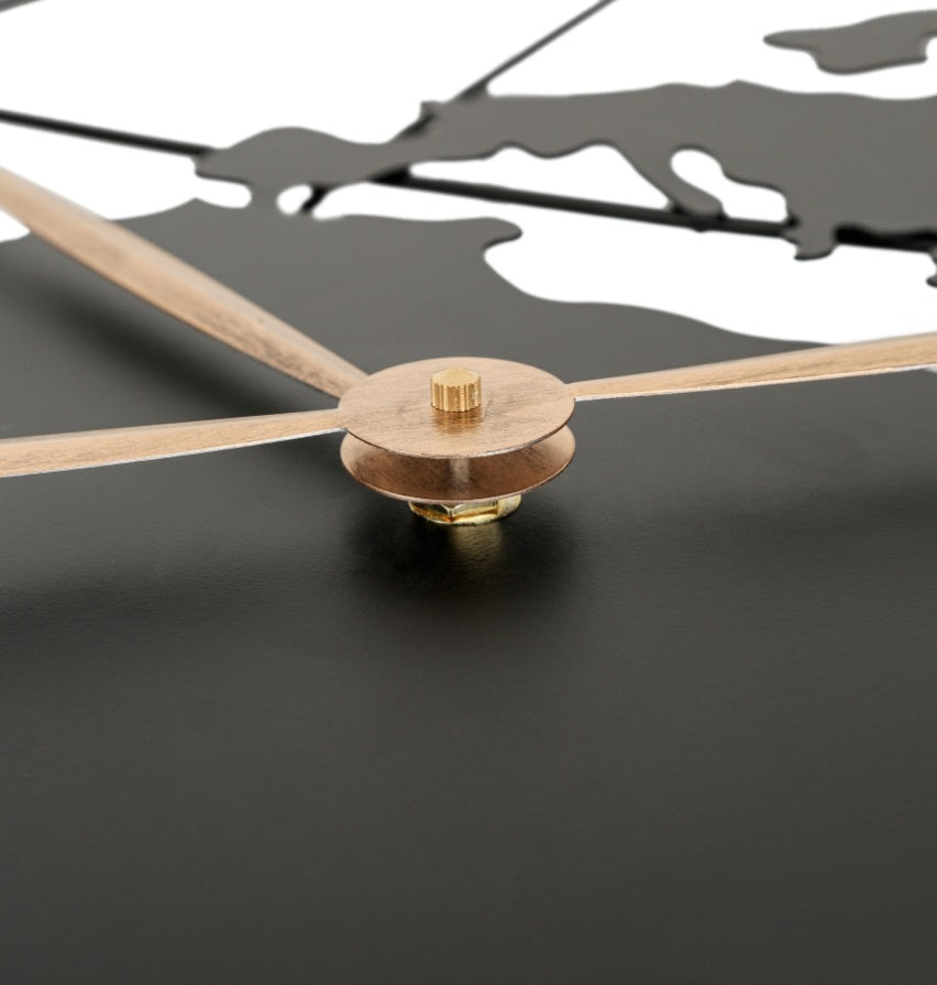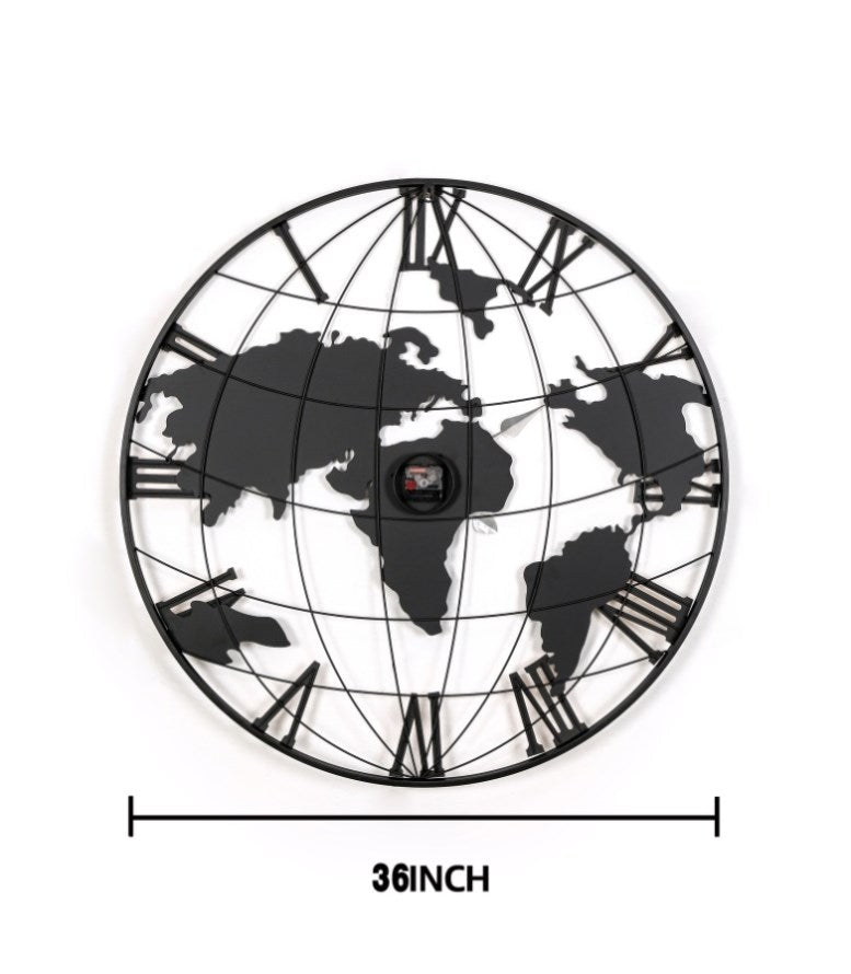 36 inch metal frame clock is not only a functional and powerful time display tool, but also a decorative piece with artistic value. Its handmade decorative artwork features, golden pointers, aesthetic world map elements, and thoughtful hands accessories design make it a highlight in the home space, showing the owner's attitude and taste for quality of life and the pursuit of aesthetics.