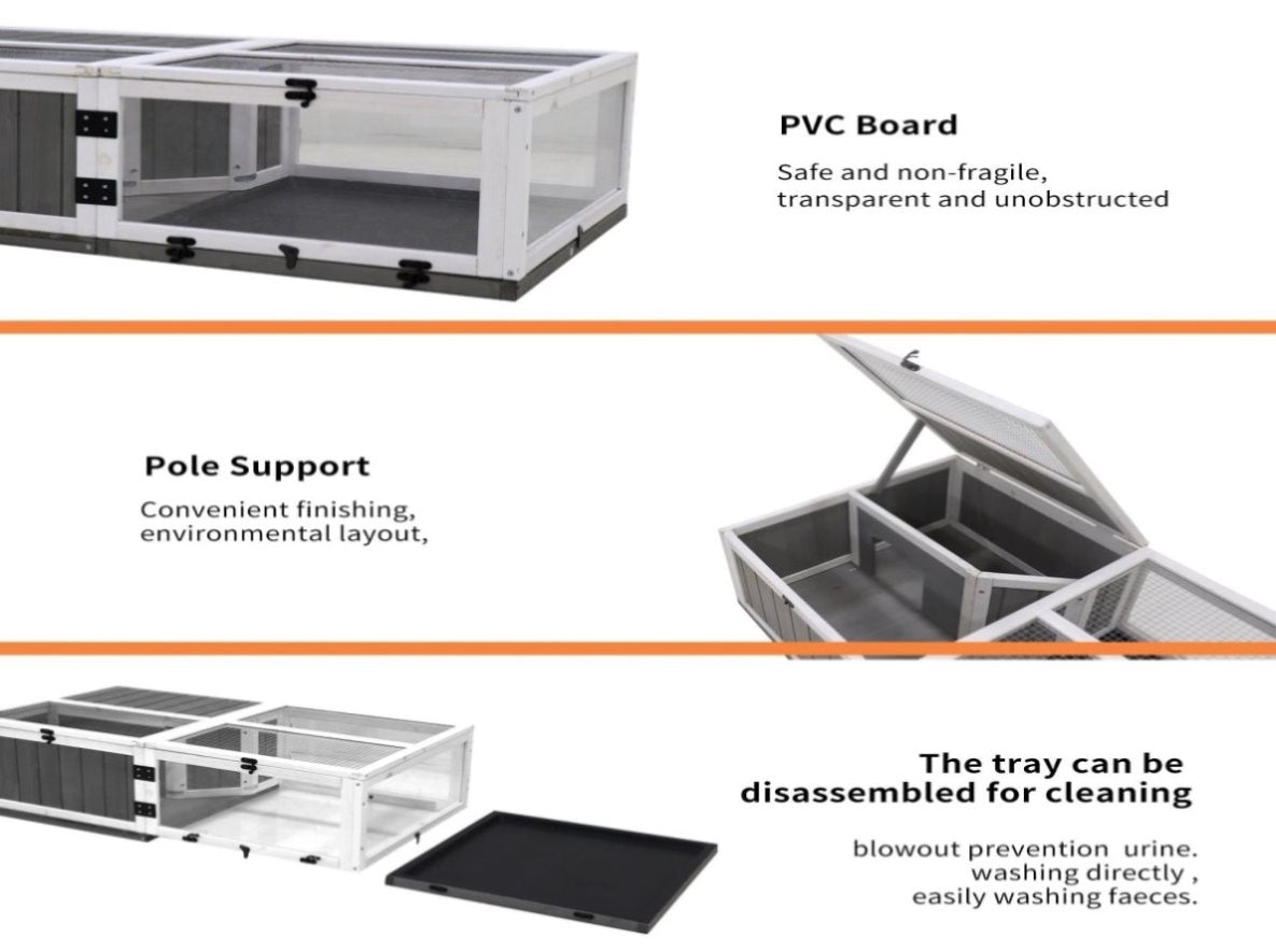 ?Safe turtle cage?Thicker wire keeps your pet safe and also prevents it from escaping from the cage. The locks and hinges are strong and durable for years of use. Natural solid fir wood will not be corroded by tortoise excrement.