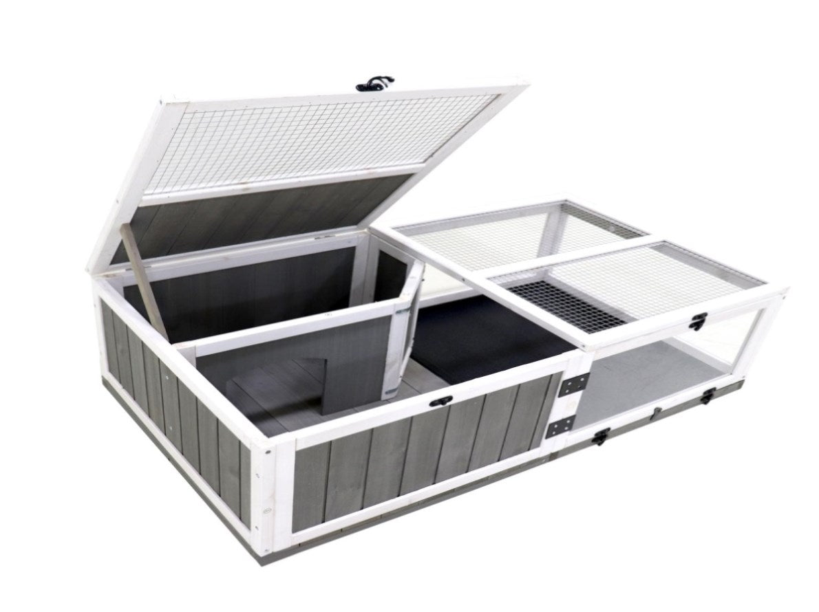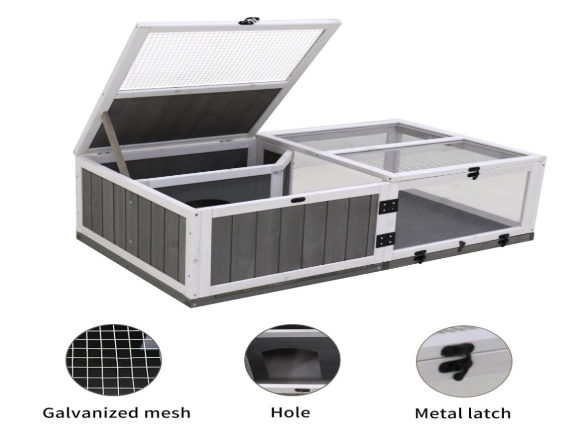 ?Indoor outdoor use?2-room design provide large run space for your pets to roam, play, relax, and sleep. Suitable for small animals like tortoises, lizards, geckos, and snakes. Also suitable for small amphibians that require only a small amount of water.