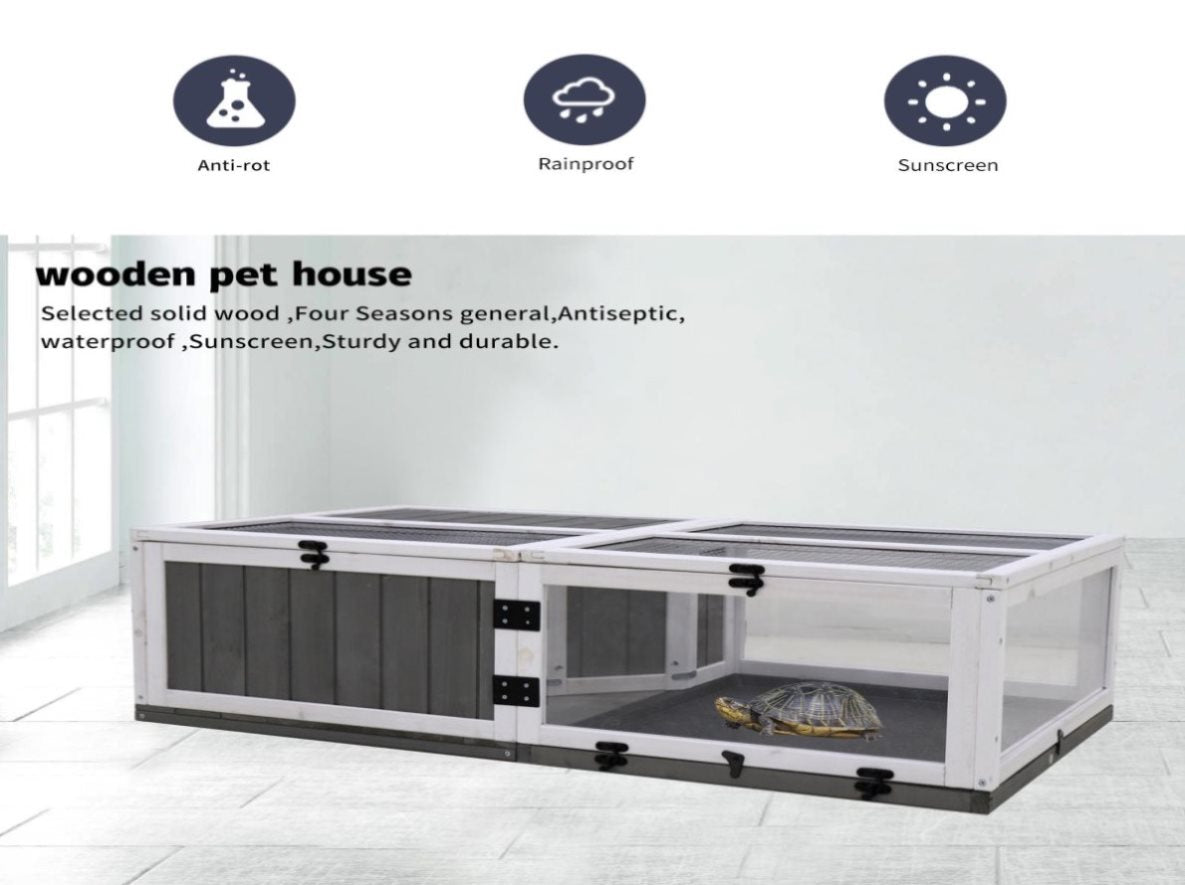 43"Upgrade waterproof tray, activity tray, wooden turtle house indoor small animal turtle cage 98540443