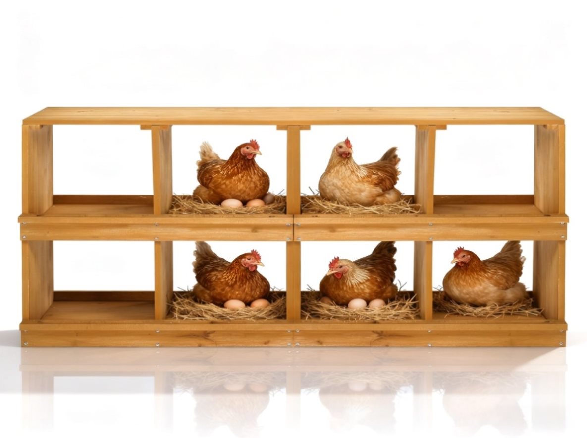 2. Spacious 8-Compartment Design: With eight separate nesting spaces, this box comfortably accommodates multiple chickens at once, encouraging better egg-laying productivity.