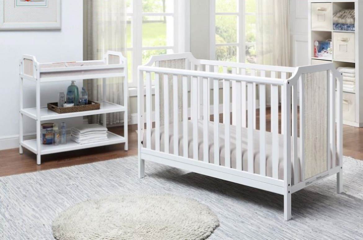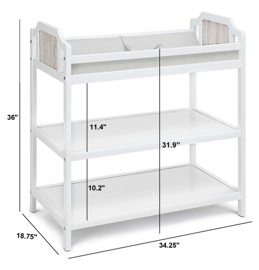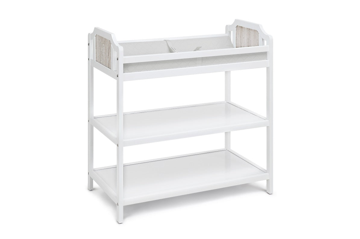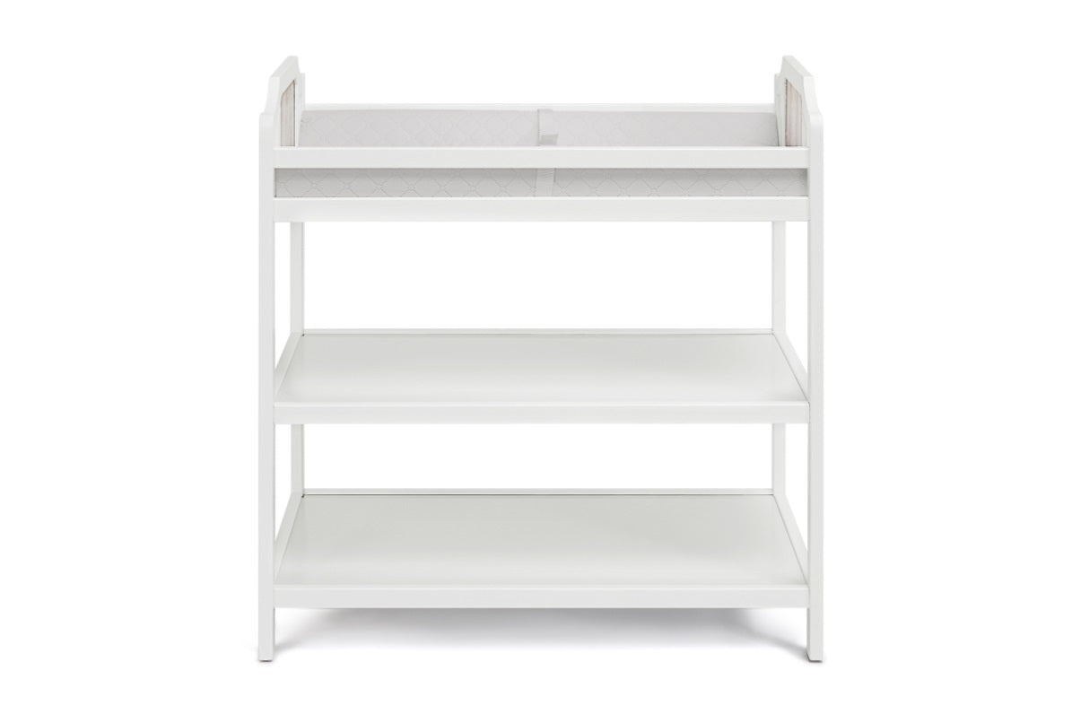 The coordinating, Suite Bebe Brees changing table is the easiest and safest place to change your baby. Made with the same quality and design of the Suite Bebe Brees crib, it’s the perfect addition to your nursery. Designed with two open storage shelves for those diapers and baby necessities. However, when you no longer need it as a changing table, it’s the perfect shelf for your child’s toys and books. And even later for yourself, it’s the perfect bar cart!