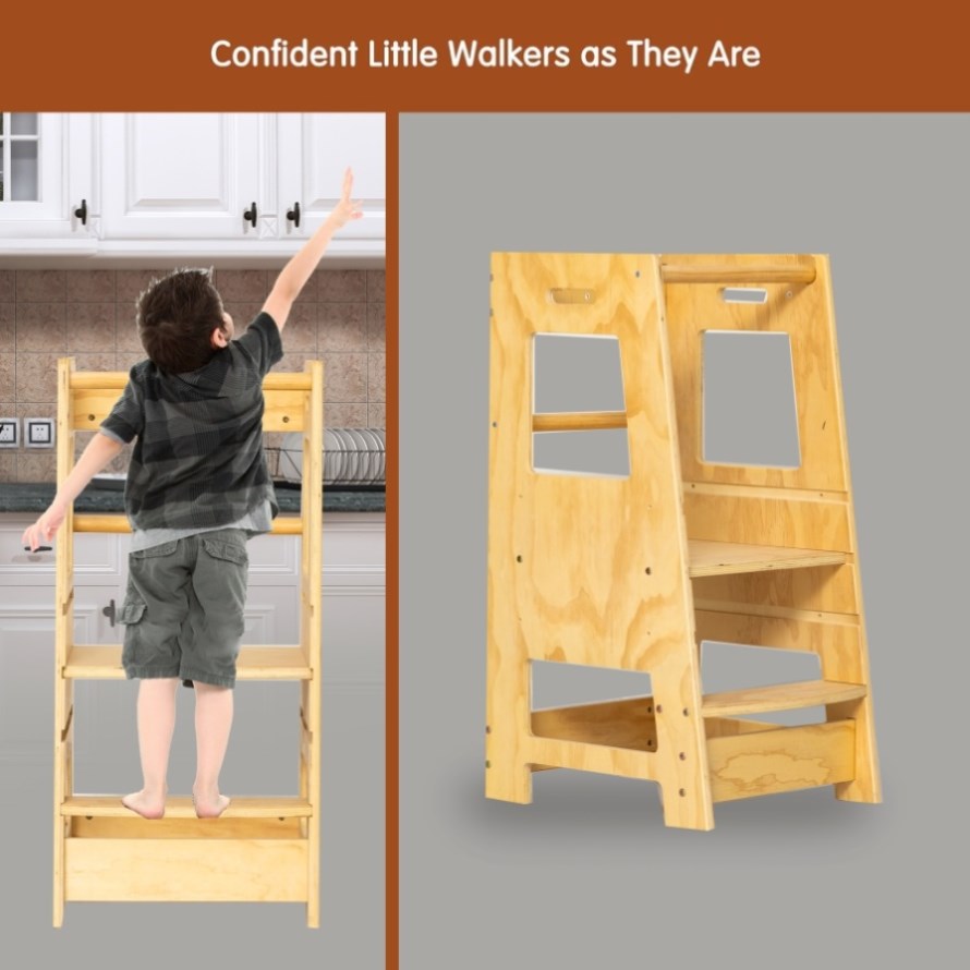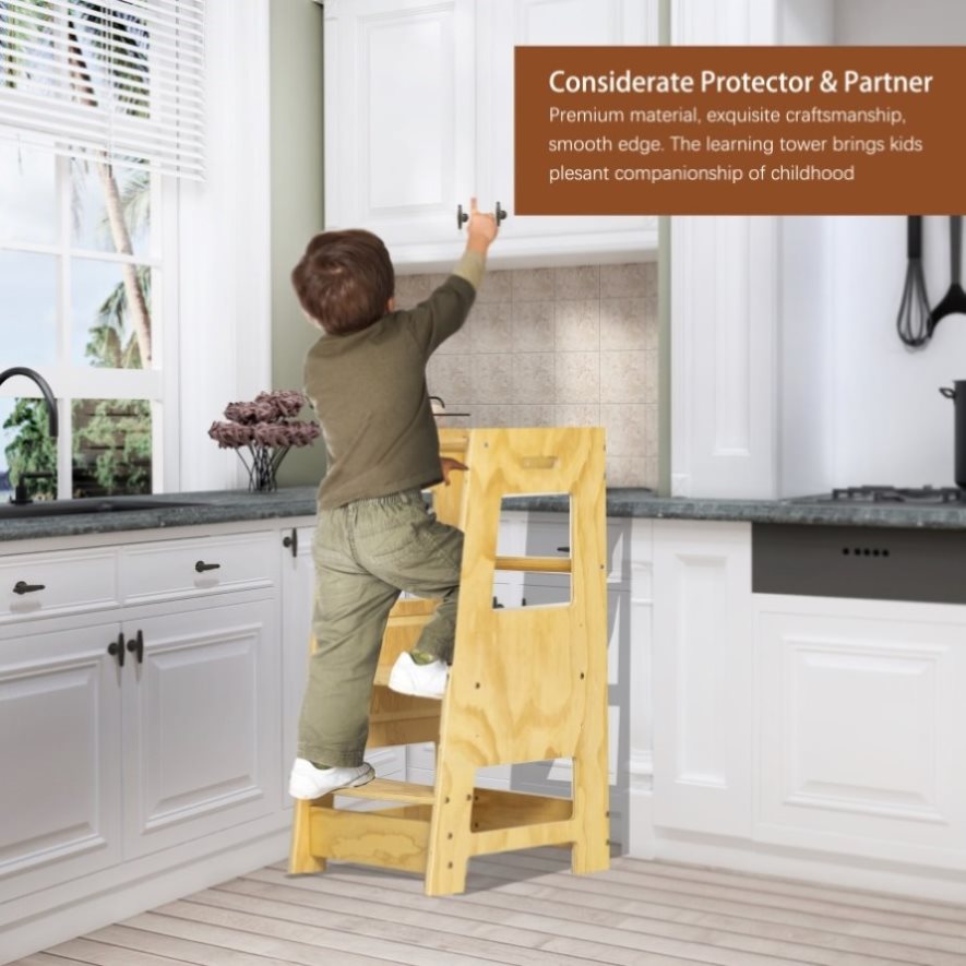 ALL-ROUND CONSIDERATE SECURE: When shopping for a step stool, safety is paramount.Learning Stool Tower offer great protection to kids. Thanks to an innovative railing that surrounds the child on all four sides, providing enough protection to prevent falls.The multi-layer surrounding rails provide all-round protection for kids, and the anti-drop design makes it safe and secured for kid no matter which direction they face