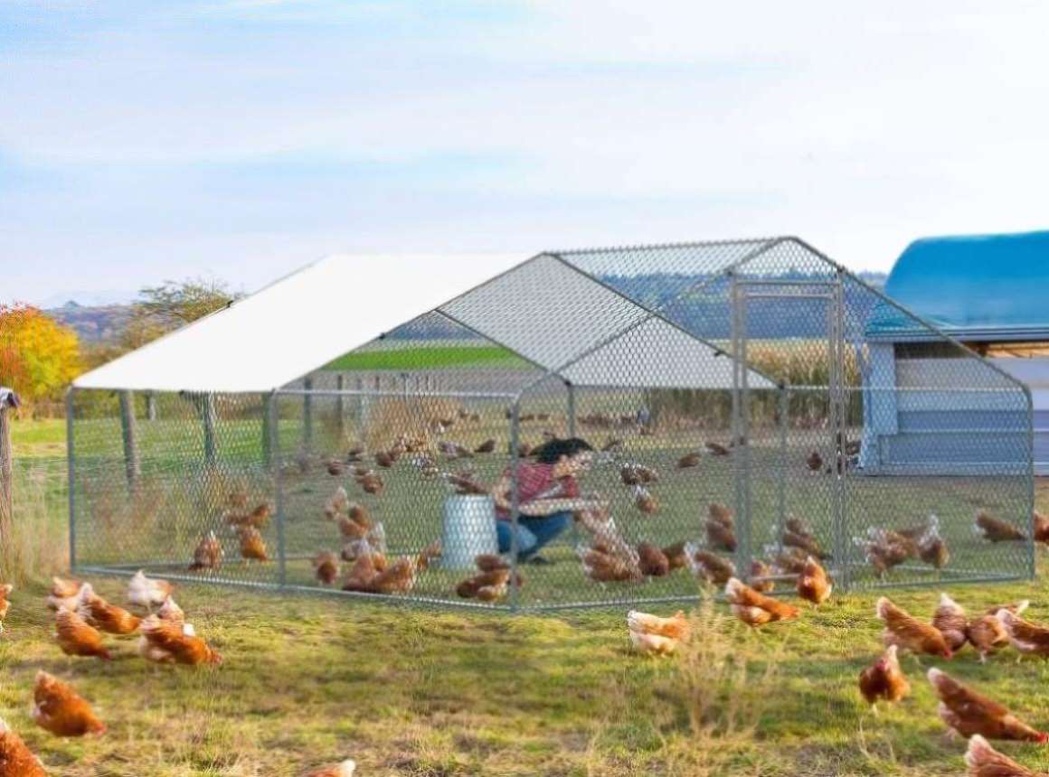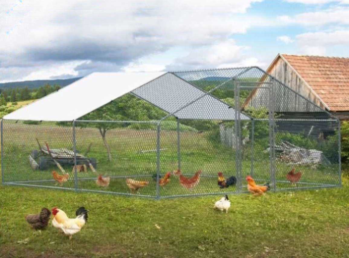Elevate your backyard farm setup with our expansive 10 x 10 ft Large Metal Chicken Coop. This walk-in poultry cage is designed to provide ample space for your chickens, rabbits, cats, dogs, or other farm animals to roam and play freely. Crafted with meticulous attention to durability and safety, this coop ensures a secure and comfortable environment for your animals. A waterproof cover shields your poultry from adverse weather, while the robust construction guarantees longevity and ease of maintenance. Ideal for outdoor settings, this chicken coop is an essential addition to any backyard farm or garden, offering a blend of functionality, protection, and spaciousness.