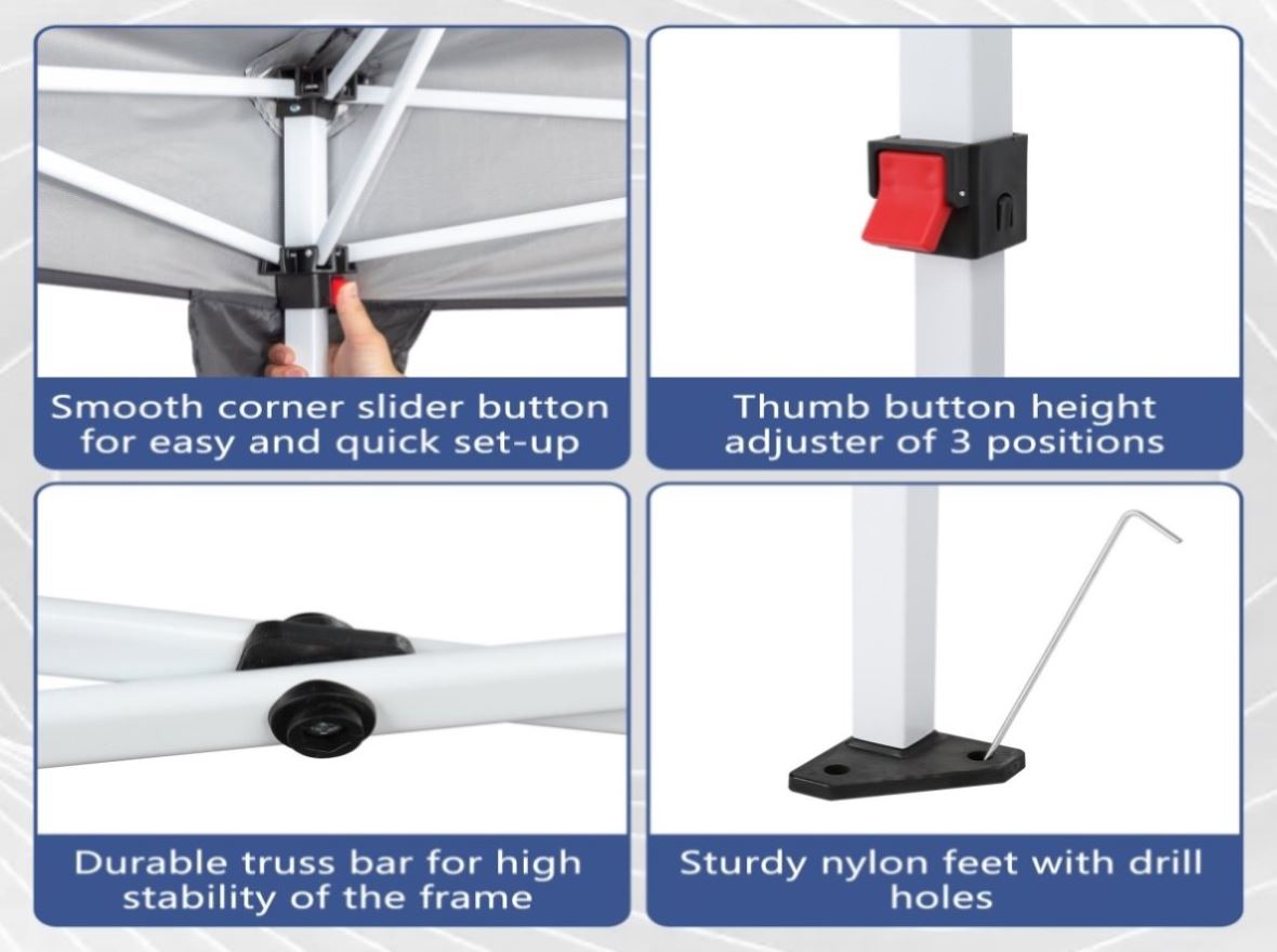 Your family will have a wonderful time with this large outdoor canopy. With a durable, hard canopy and thick, sturdy posts, this canopy is truly the ultimate in practicality and convenience. It comes with a carrying bag with rollers so that you can easily bring the convenient gazebo anywhere as a quick, sun-coverage solution. The canopy top also wear silver coating, which is UV-resistant and waterproof. The durable powder-coated steel frame features pre-drilled holes so you can anchor it if desired. Set it up on your lawn or on your patio, or take it during camping, and get ready to enjoy delightful outdoor life!