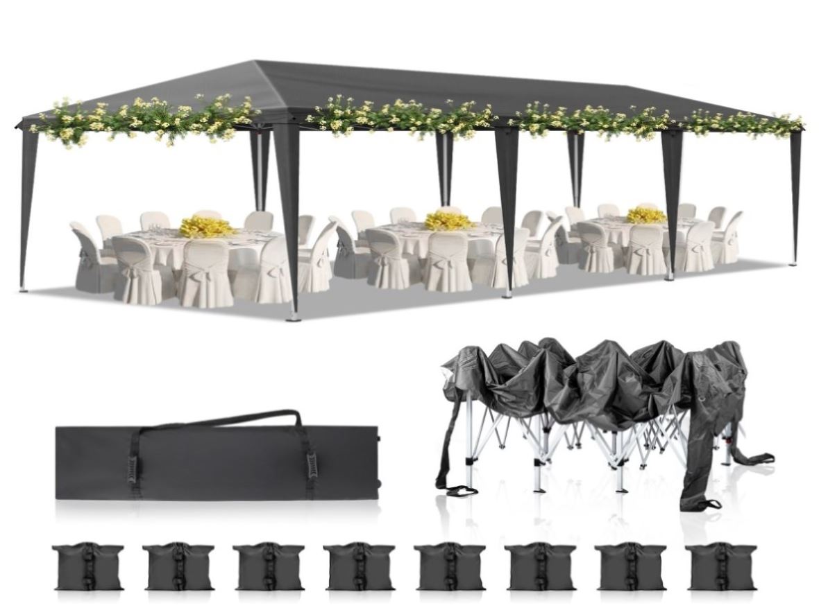 10x30ft Outdoor Pop Up Canopy, Portable Instant Canopy Tent for Outdoor Events Party Wedding 10856158