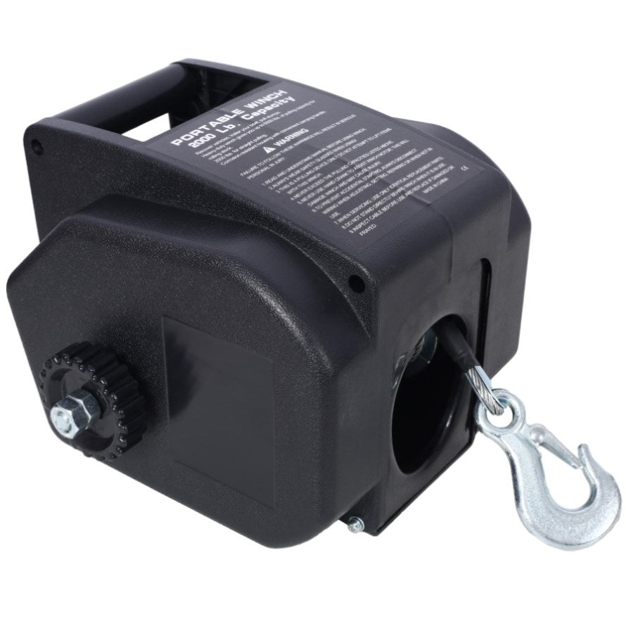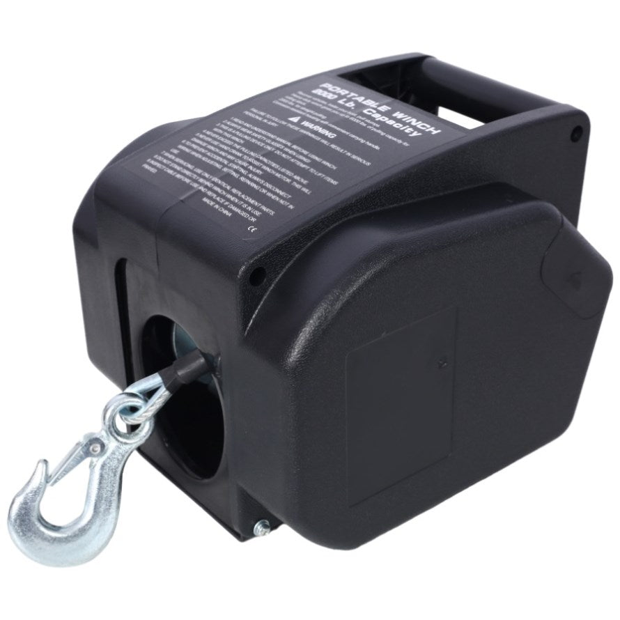 Enhanced Control & Accessibility This winch comes with a remote control switch featuring a 10-foot cord, extended reach 20-foot battery cables, and a manual hand crank option for added versatility. The portable design, complete with a carry handle, ensures ease of use wherever you need it. (Power-in function is controlled via the remote control only.)
