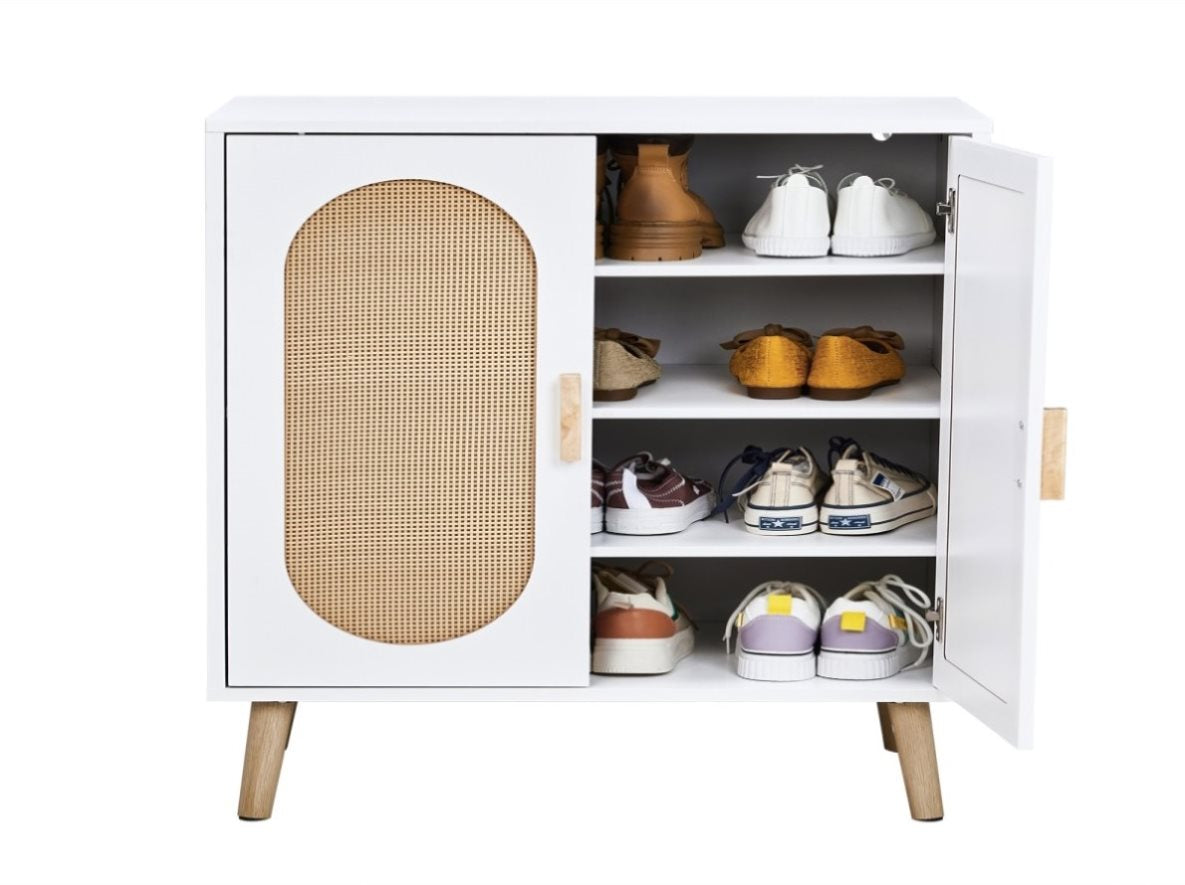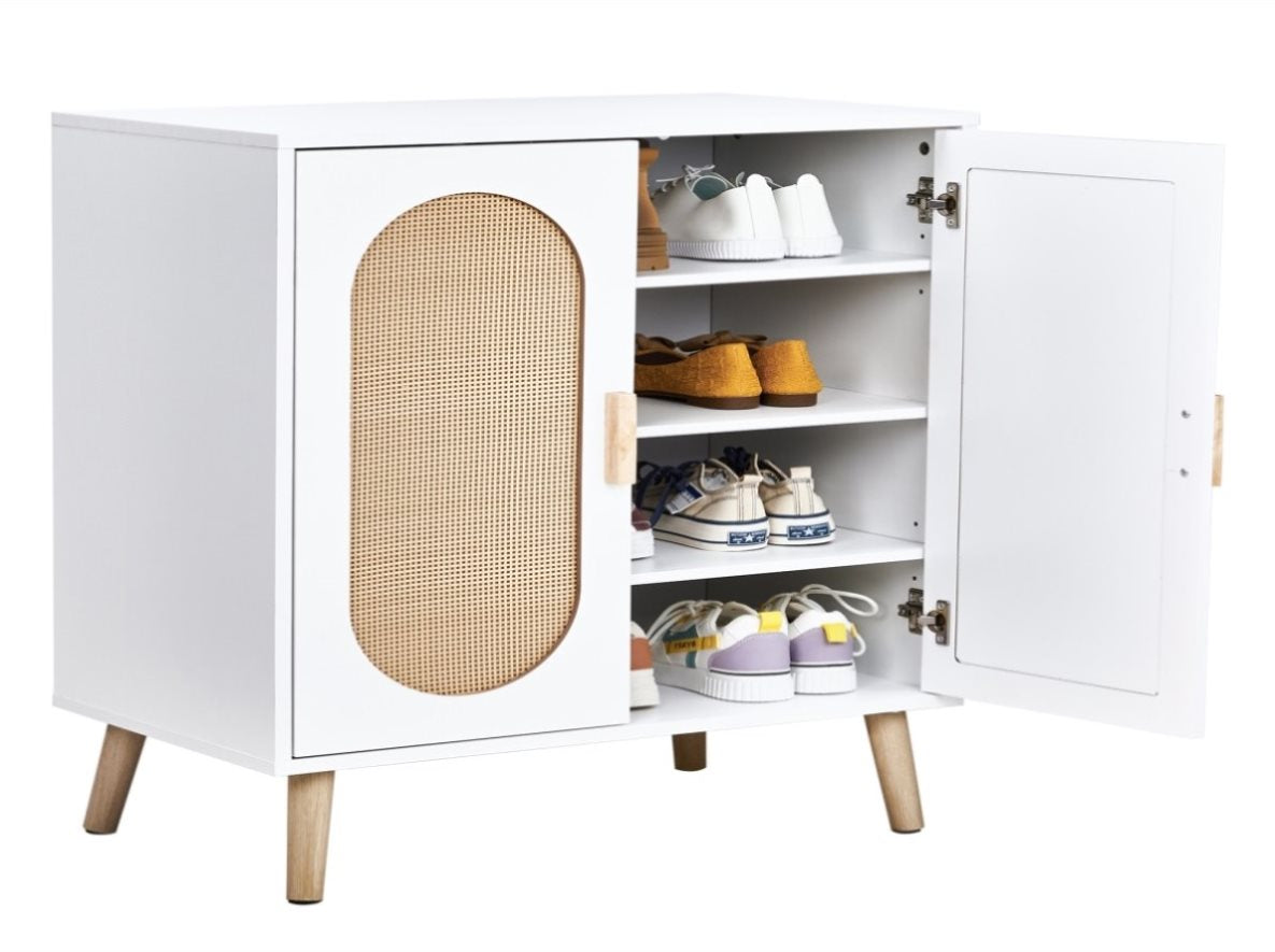 2-door vertical shoe cabinet particle board plastic rattan white frame original wood rattan 97933148