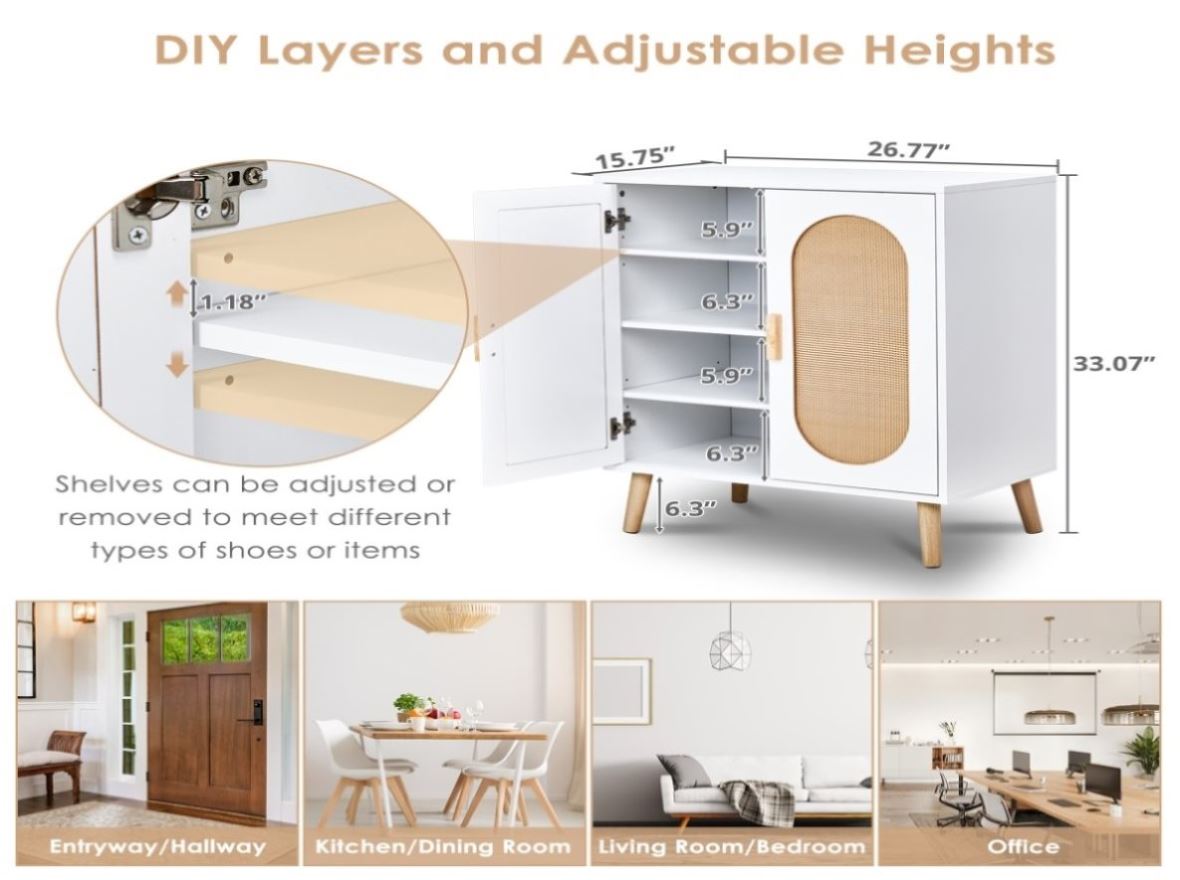 • 2-door cabinet design: Two large-capacity door openings, spacious interior space, can accommodate a variety of types of shoes, and are equipped with partitions for easy classification and organization.