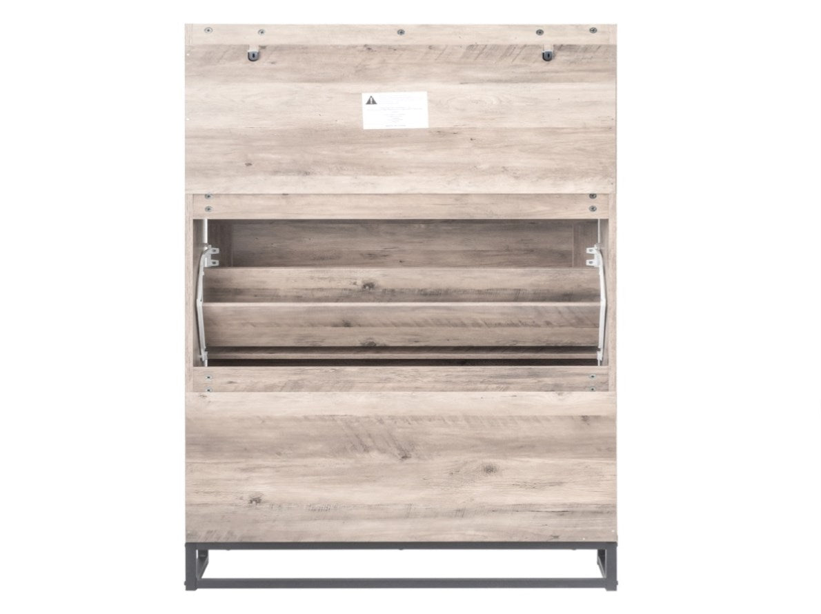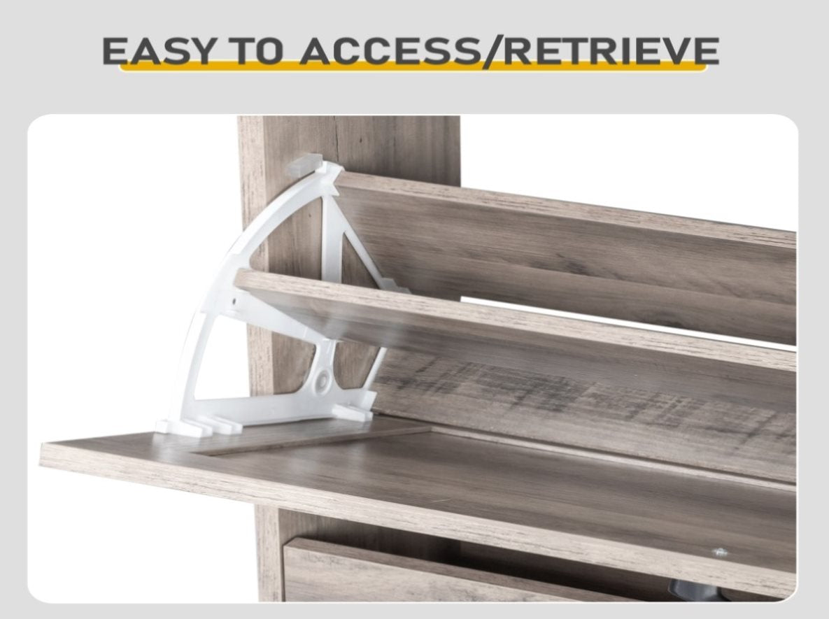 Convenient Triple Flip-Door Compartments:Β The cabinet includes three individual flip-down compartments, each acting as a shallow, forward-tilting bin. This innovative design allows you to effortlessly drop in or retrieve shoes without fully opening the main cabinet, making it perfect for storing daily-wear footwear for quick and convenient access as you enter or leave.