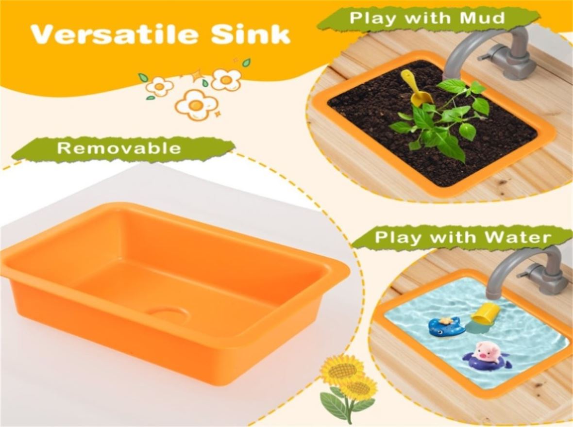 • Well-Crafted for Reliability: Crafted from sturdy fir wood, this outdoor mud kitchen is built to withstand children's rough play. It complies with ASTM and CPSIA, featuring a splinter-free surface and rounded edges to ensure a reliable and safe play environment little ones.