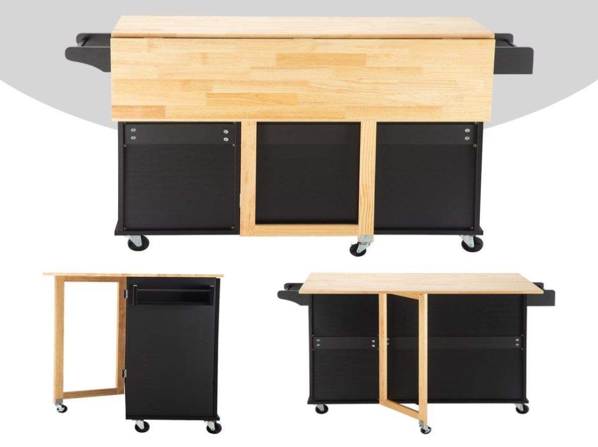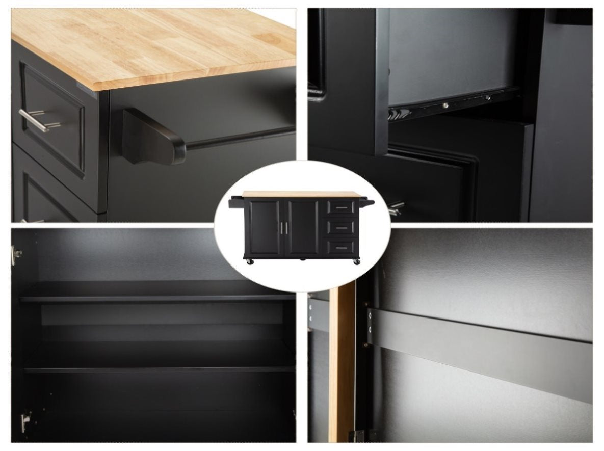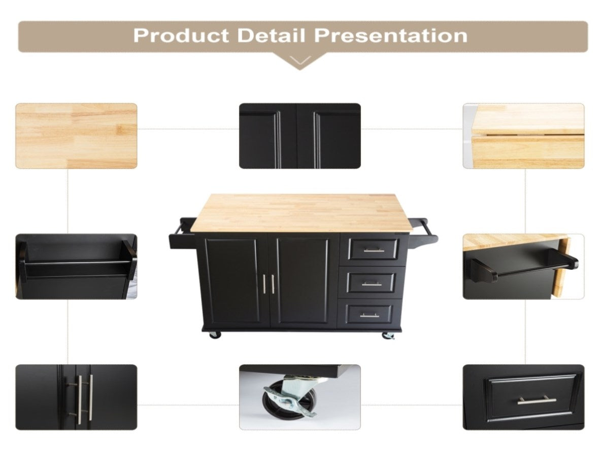 Kitchen Island & Kitchen Cart, Mobile Kitchen Island, Rubber Wood Top, Big & Adjustable Shelf Inside 17444090