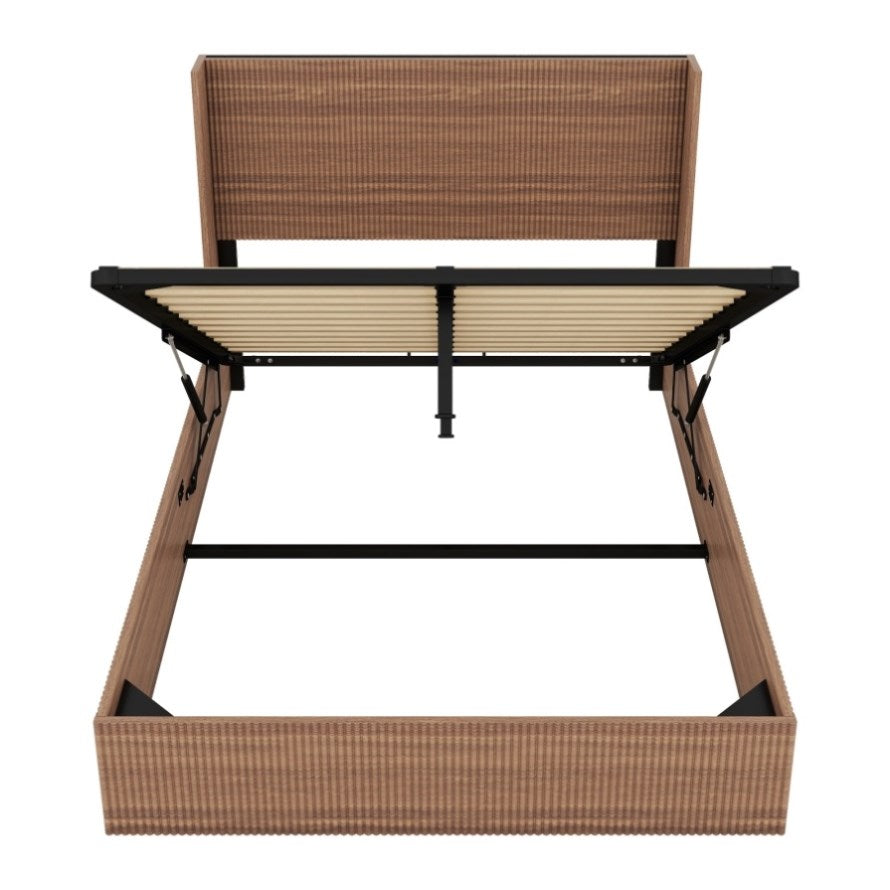 Large grooved undulating lift storage bed frame, wooden platform bed frame with lift storage, no W1858P307153