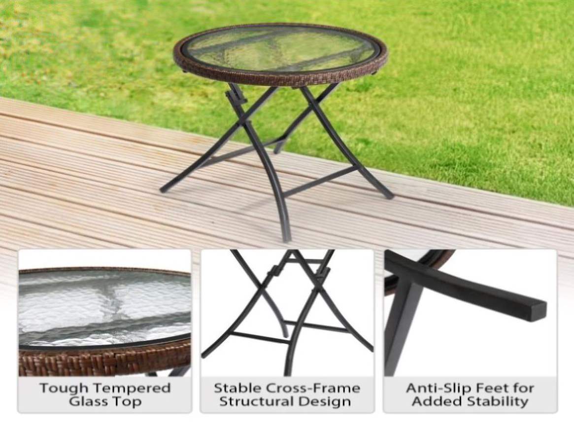 Outdoor Side, Round Rattan Patio Side, Small Foldable Wicker with Tempered Glass 95990667