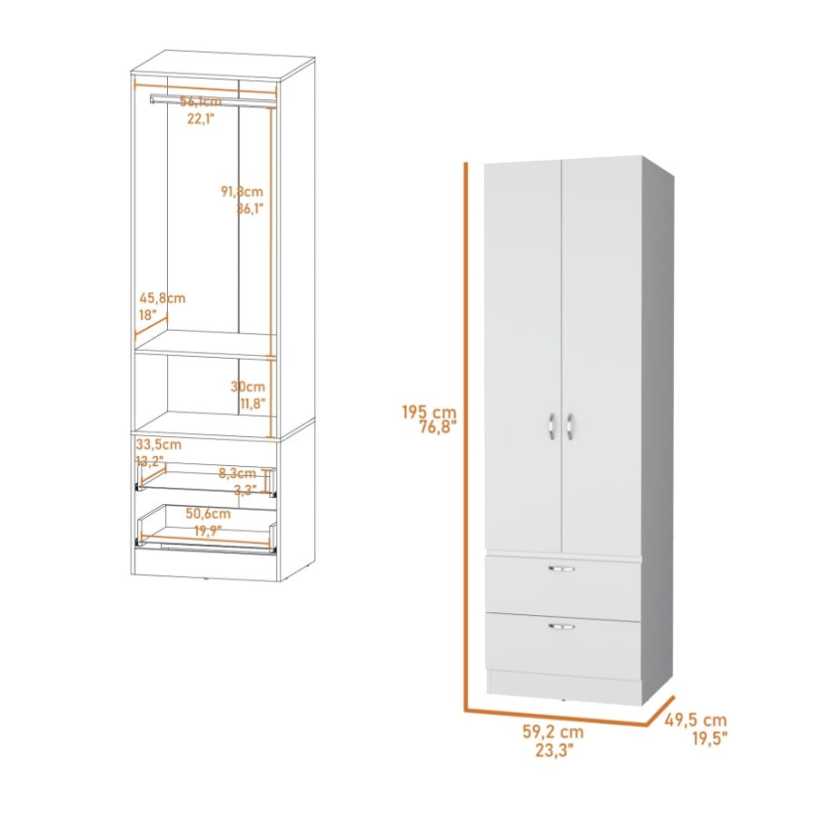 Tall Mayer Wardrobe in Melamine with Two Doors and Two Drawers