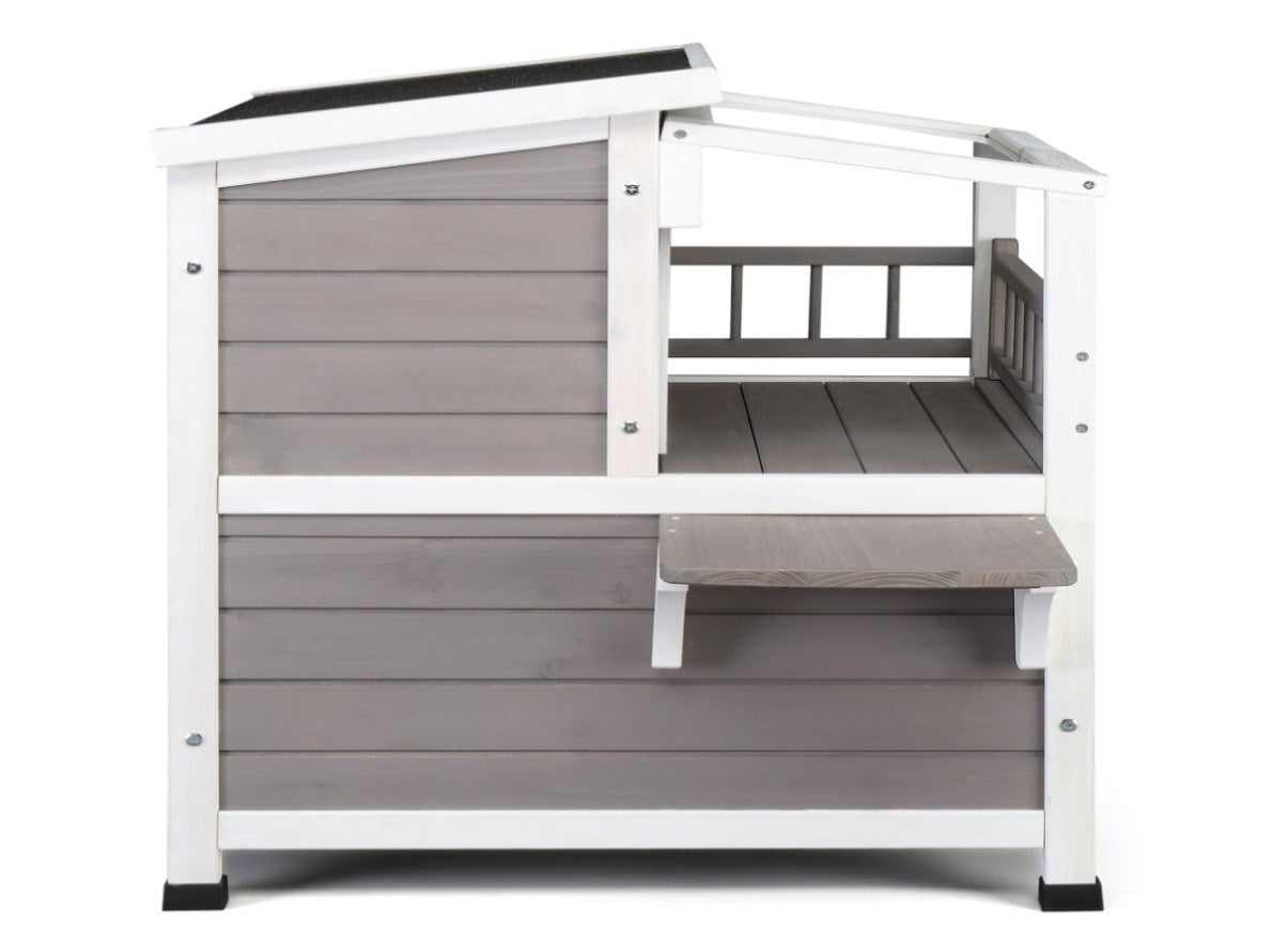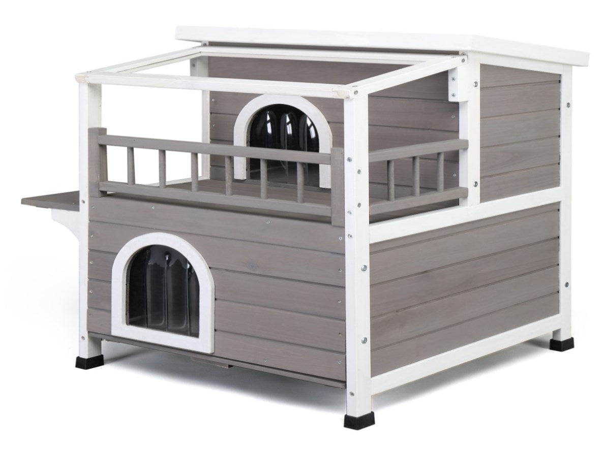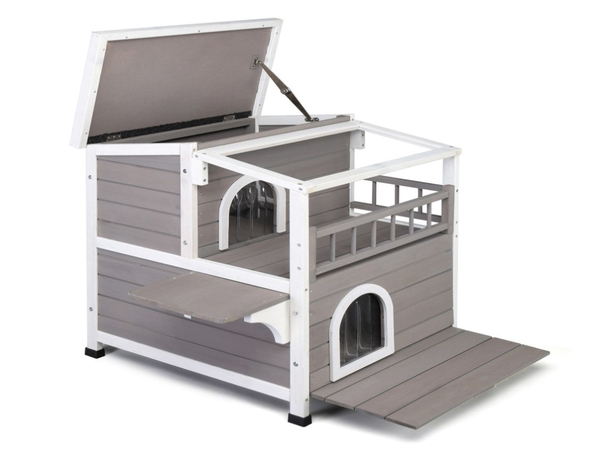 Wooden Cat house 2-Story Indoor Outdoor Luxurious Cat Shelter House with Transparent Canopy, Large 60901308